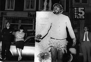 (foto: Ab Pruis 1964. Robert Jasper Grootveld bij het Lieverdje op het Spui.)