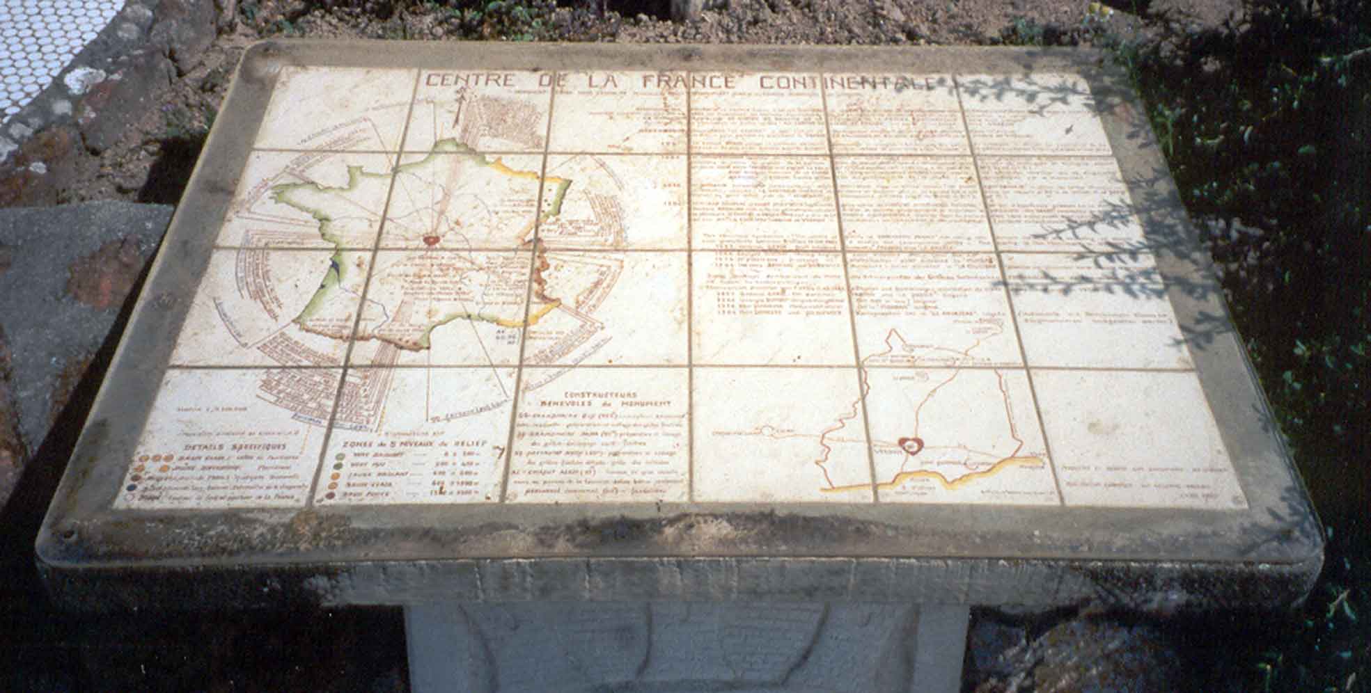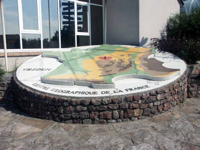 Uit de folder van het Office du Tourisme: Vervolgens: "Het gaat om een bij benadering vastgesteld centrum of zwaartepunt van het oppervlak van het franse vasteland, zonder de eilanden, zonder de voornaamste watervlaktes als meren en riviermondingen en zonder rekening te houden met het relief".