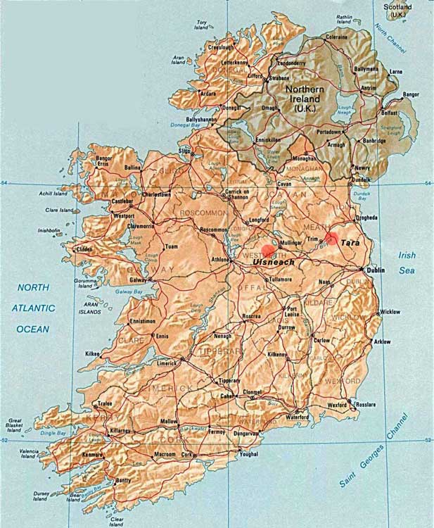 Het oude Ierland kende twee belangrijke centra, Tara Hill (Meath) en Uisneach (West meath).