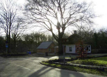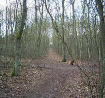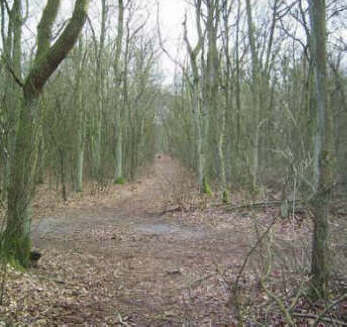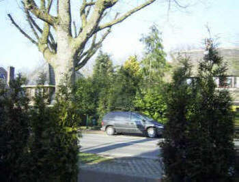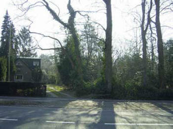 2a. Nieuwe Bussummerweg, tussen de bomen de plek waarop het oorspronkelijke wandelpad vanaf de Naarderstraat uitkwam.