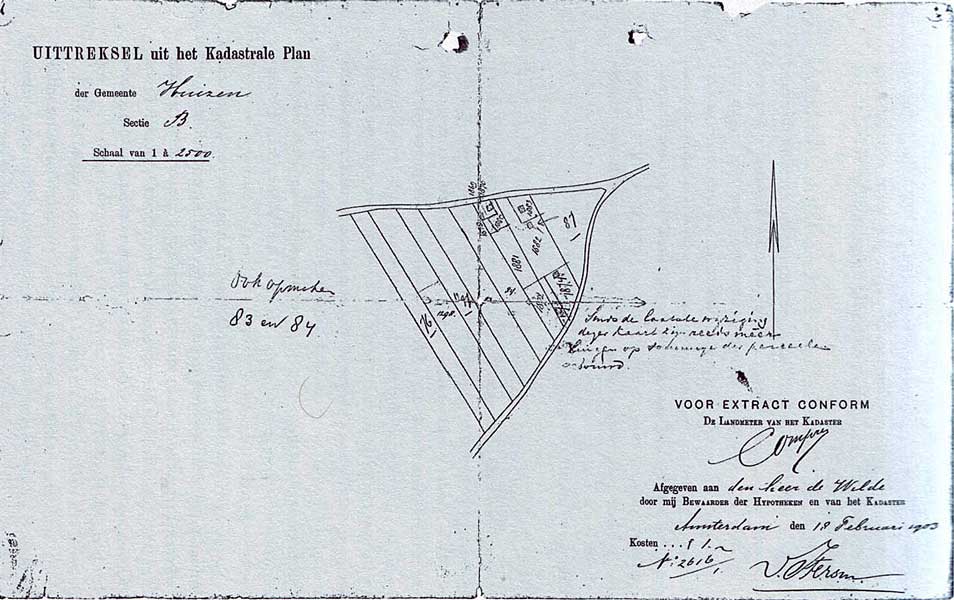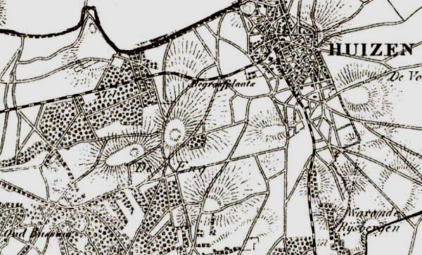 - Een gedeelte uit de kadasterkaart van de gemeente Huizen uit 1880