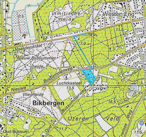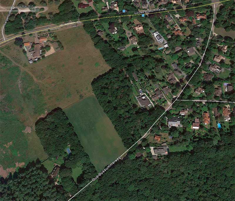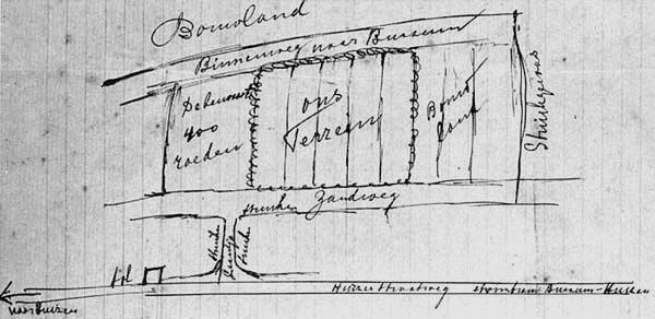 de Nieuwe Bussumerweg (oorspronkelijk een zandweg), en wordt op de gemeenteplattegrond