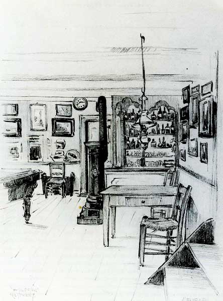 Nescio gaf rond 1911 een beeld van de gelagkamer van Het Rechthuis, die hij met enige ironie beschrijft: