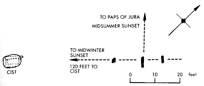 afb.12, Ballochroy, oriëntatie t.o.v. de Paps of Jura, (Plattegrond A.Thom).
