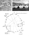 afb.13, Westelijke horizon met uiterste ondergangspunten van maan (18,61 jaarcyclus) en zon.