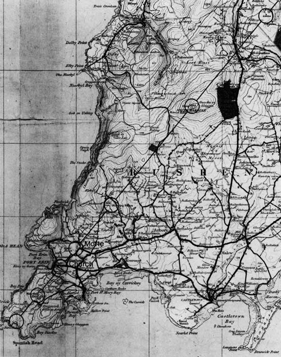 afb.9, Isle of Man, rechte lijn met monumenten.
