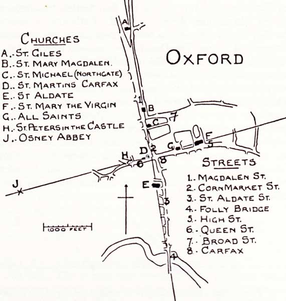 afb.3, Oxford, lijn met daarop middeleeuwse kerken. (id.)