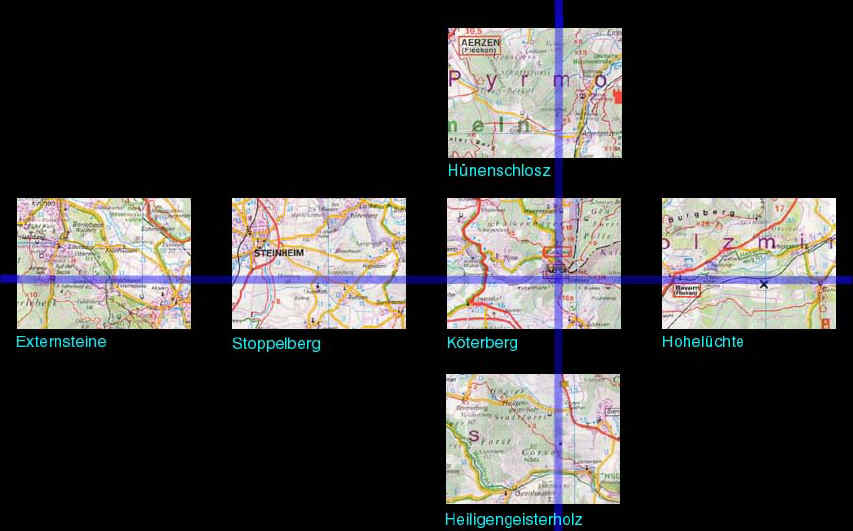 Wij ontdekten dat de Oost-west lijn ook door de Externsteine loopt, en dat