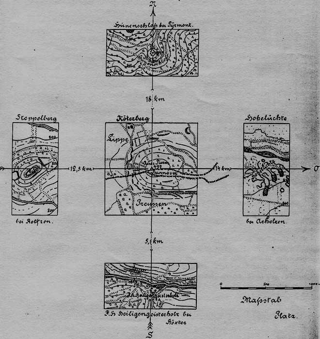 "Heilige Linien", uit Wilhelm Teudt, Germanische Heiligtümer.