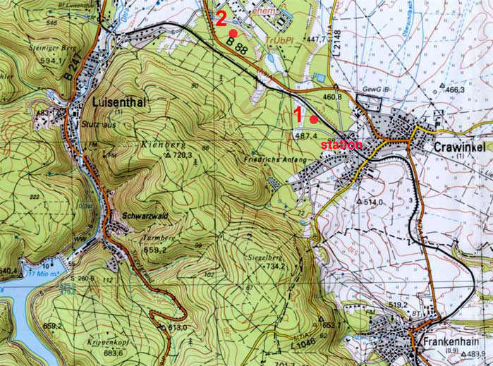 Wagon 2419 D staat een aantal dagen op een zijspoor van het Bahnhof Crawinkel,